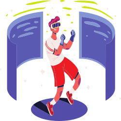 In-person students use virtual reality equipment to explore environments they make using professional modeling tools.
